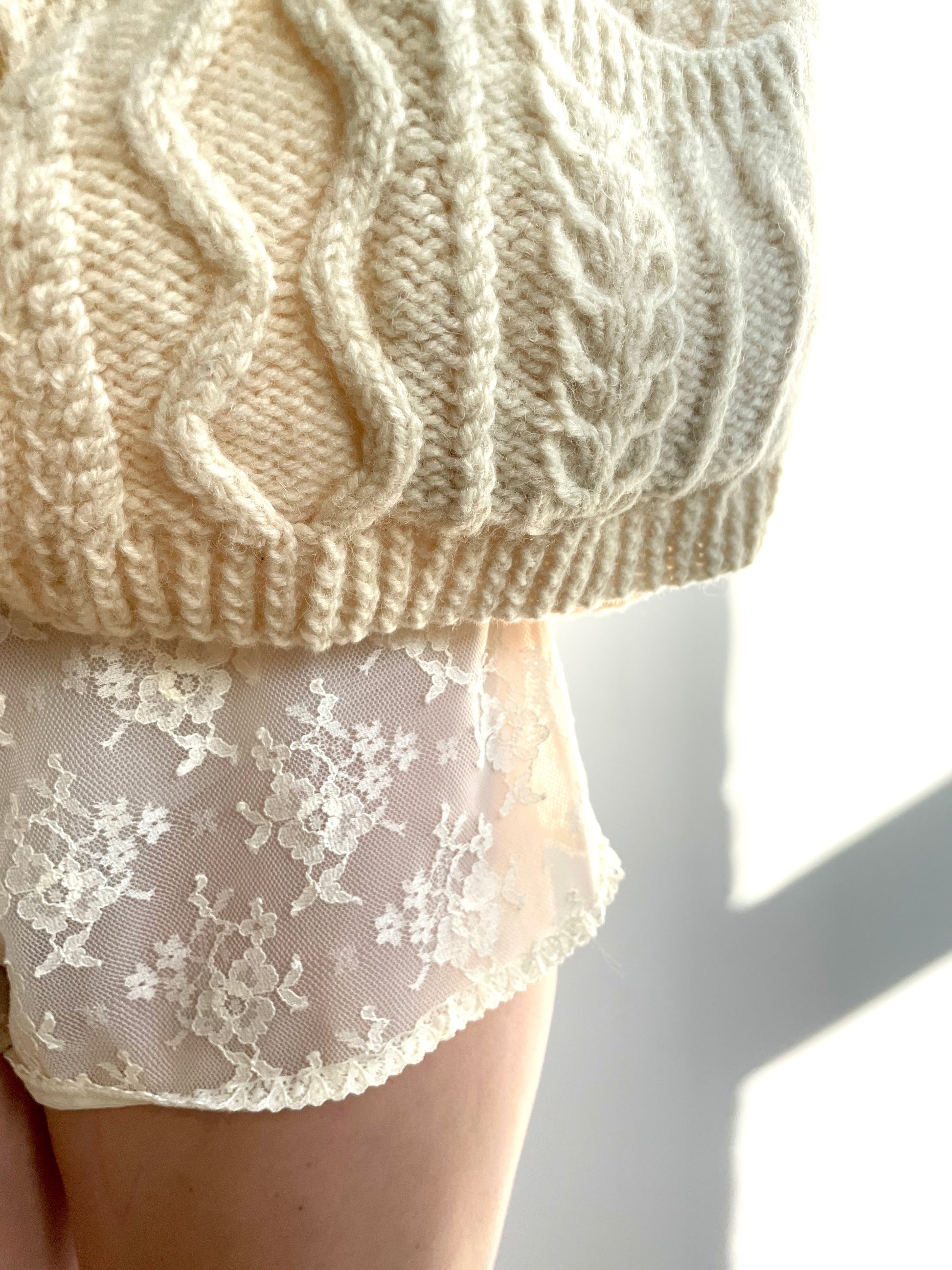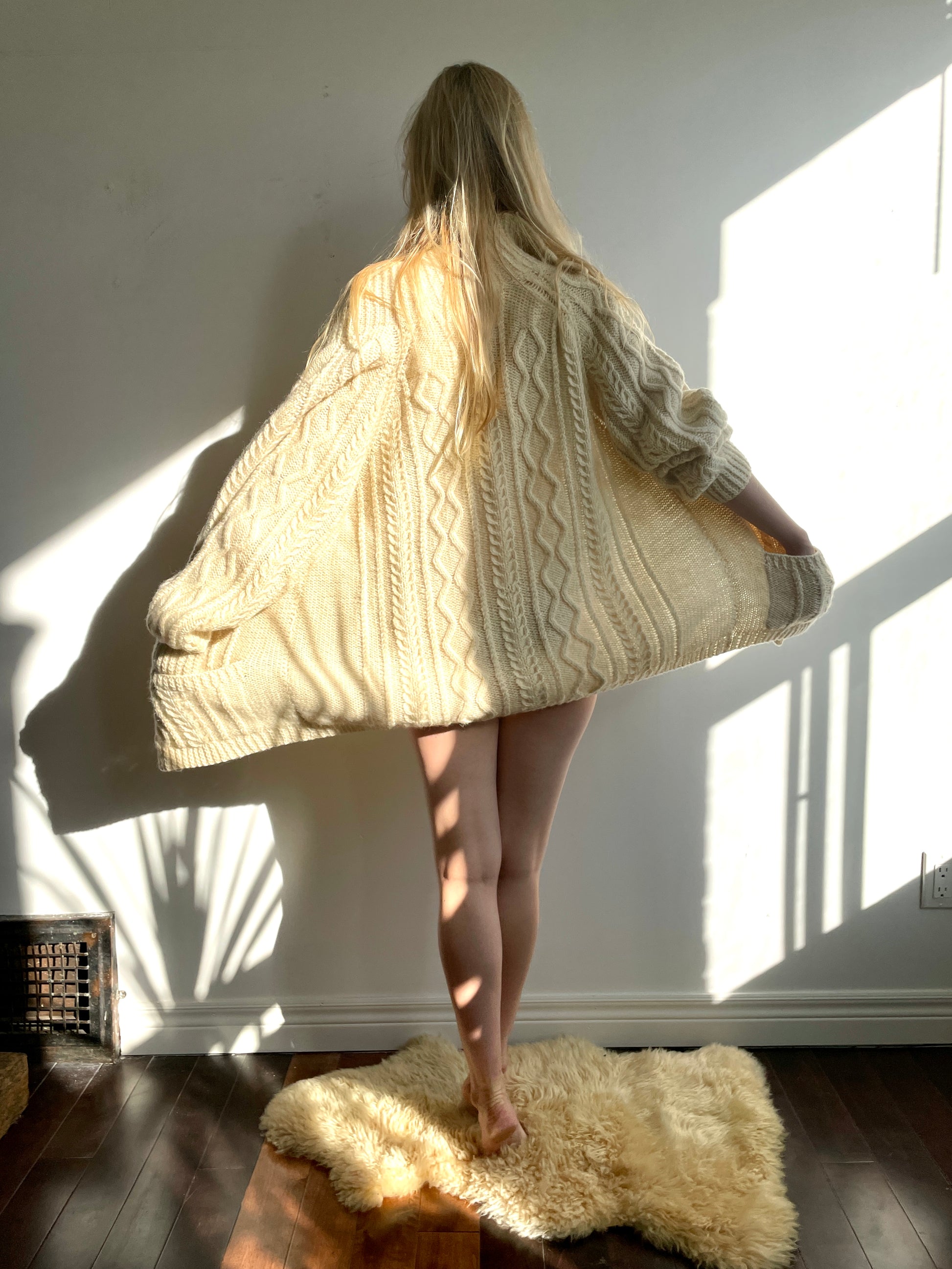 That everyday throw over anything wool hand knit cardigan. Instantly brings warmth to any outfit. Colour: ivory. Best fits: 0-6. Excellent condition.