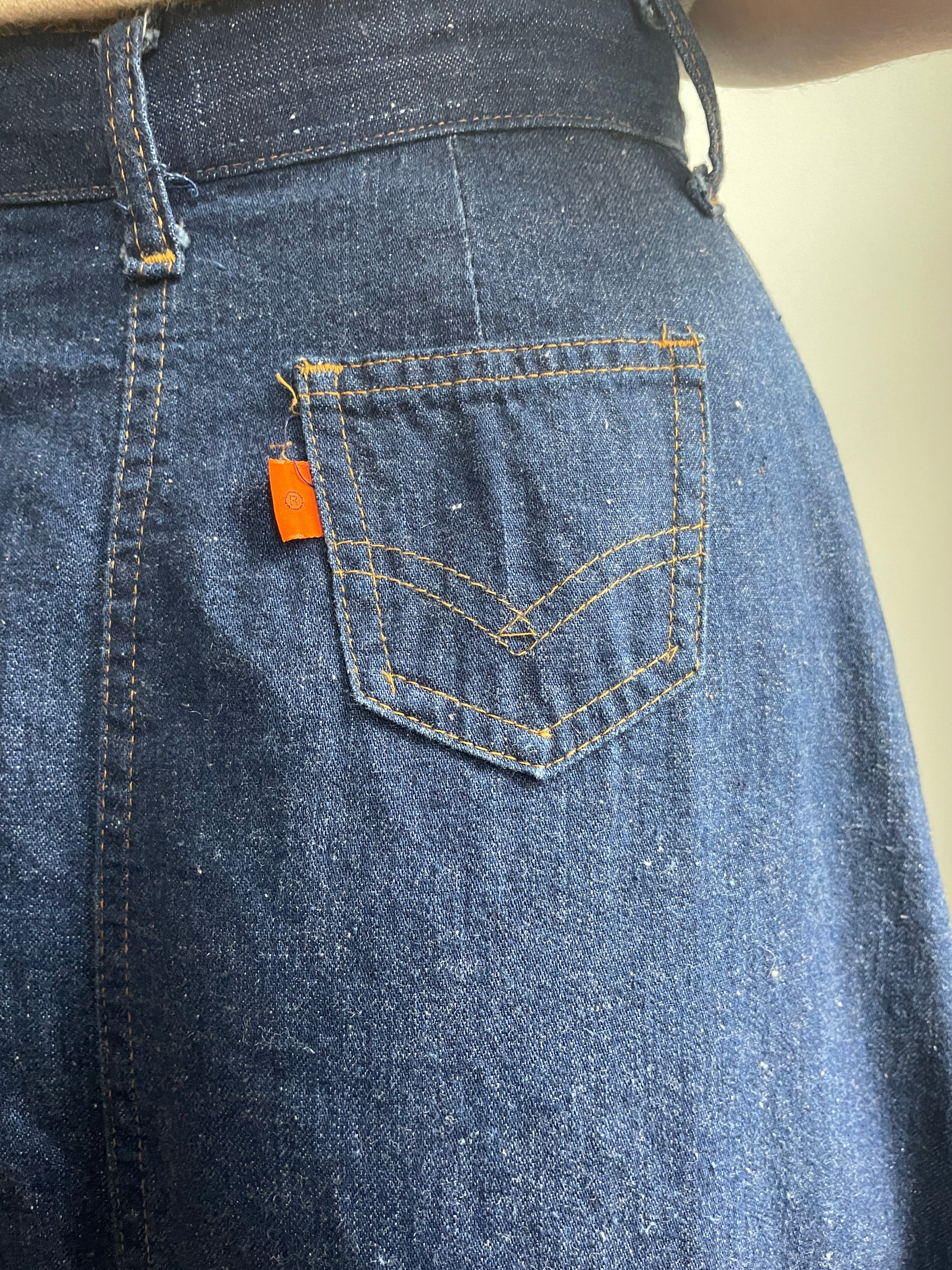 1970s Levis Indigo Denim Jean Button Up Skirt X-Small
