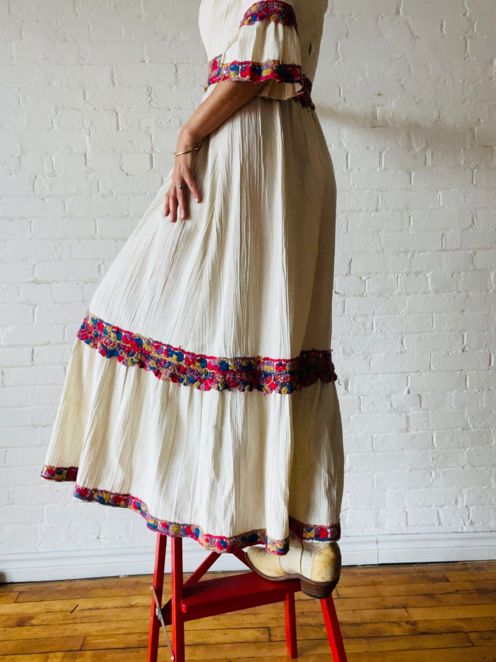1970s Prairie Maxi Dress with Multicolour Detail Medium