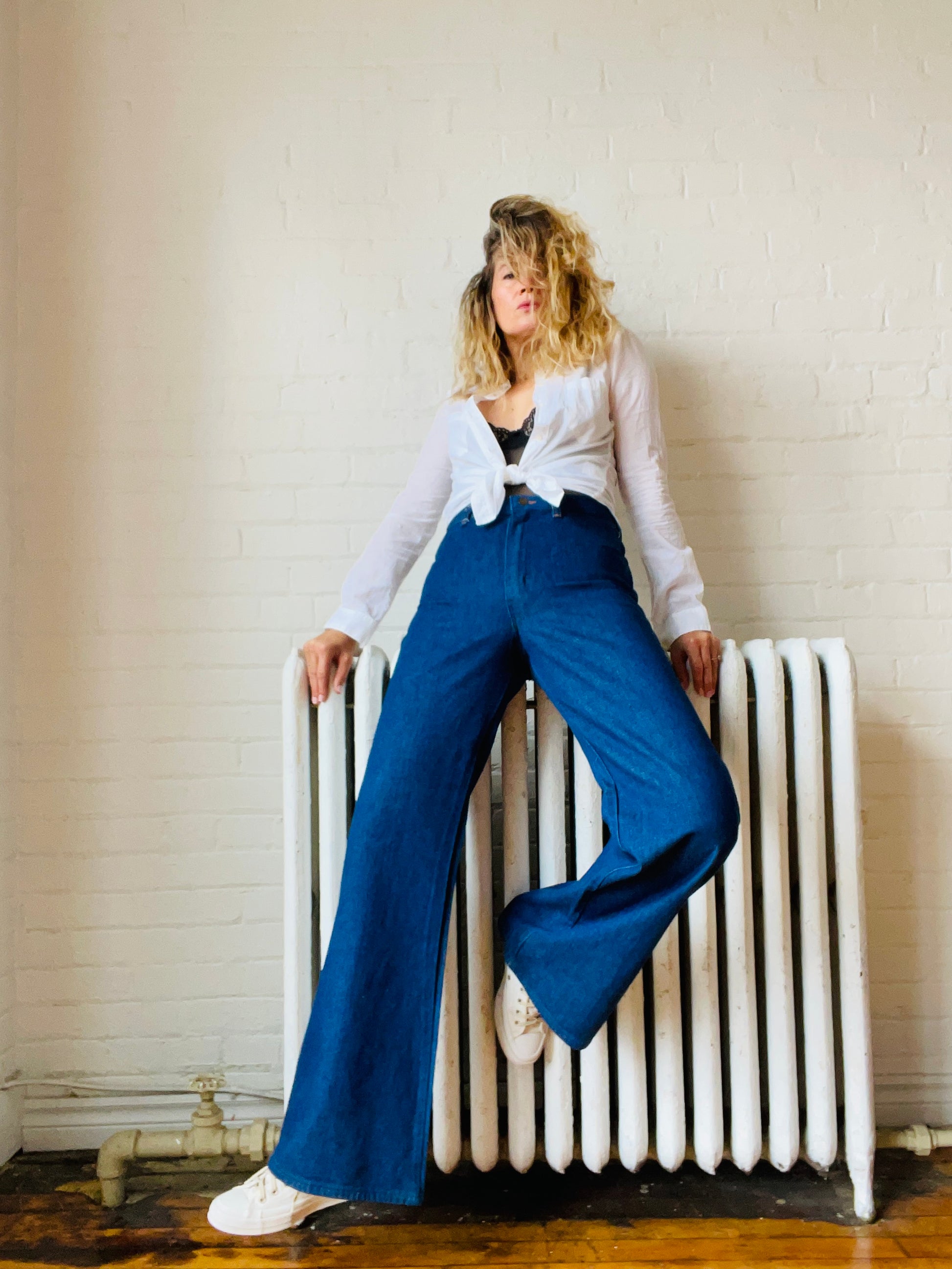 Can’t buy them like this anymore. Bellbottom flare. Indigo blue. Condition: perfect. Never worn. Fits size: 29 waist.
